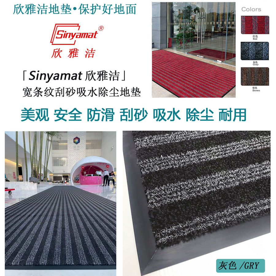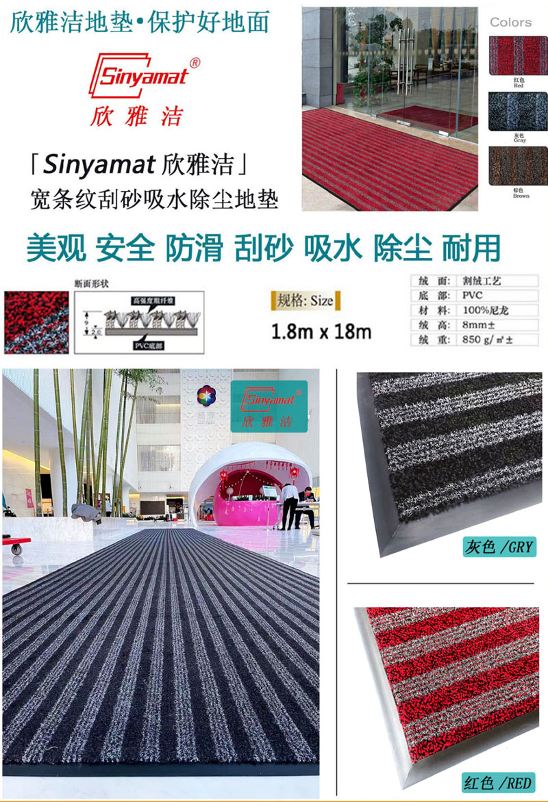 欣雅洁/Sinyamat宽条纹除尘地垫防滑吸水地垫红色/黑灰色1.8*18m可定制